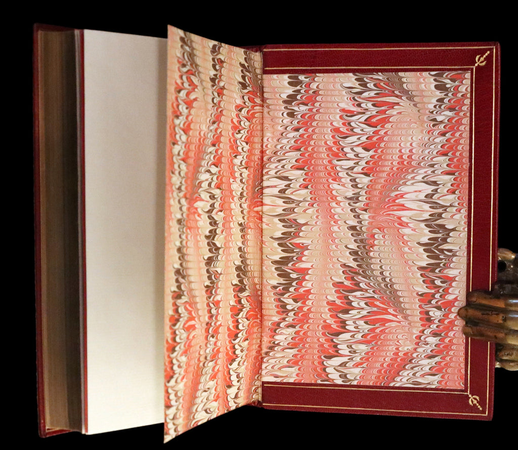 Binding: Attractive and near fine full Hermes red morocco leather binding with beautiful gilt tooling to spine by BAYNTUN (signed on the top of the first blank) (hinges fine - as shown) under a removable protective mylar cover. All edges gilt. An exquisite binding!