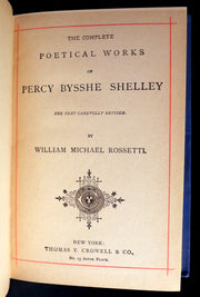 1885 Rare Victorian Book - Poetical Works of Percy Bysshe Shelley, English Romantic Poet.