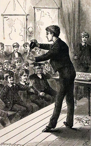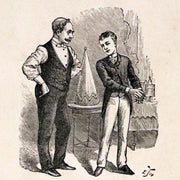 The book: Scarce and Attractive First Edition of Conjuror Dick; or, The Adventures of a young wizard -- a fictional book by Angelo John Lewis (Professor Hoffmann) published in 1885. It tells the fictional life story of a boy magician name Dick Hazard and his travels and adventures, in the company of a professional exhibitor as his assistant. The story includes the workings of the "Egg Bag," "Coin Box," "Production of Sweets," Die Through Hat," "Dancing Sailor," "Torn-and-Restored Card," "Second Sight," "Miser's Dream," and the "Inexhaustible Bottle".