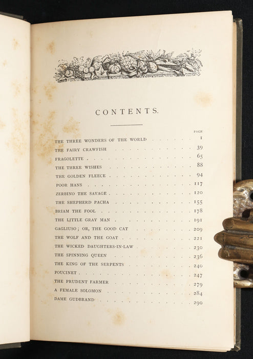 Illustrations: Fully illustrated with in-text engravings and full-page illustrations, including a frontispiece portrait of Laboulaye. Richly detailed and whimsically rendered images by an uncredited illustrator (monogrammed “FP” on some plates), enhancing the magical tone of the fairy tales.