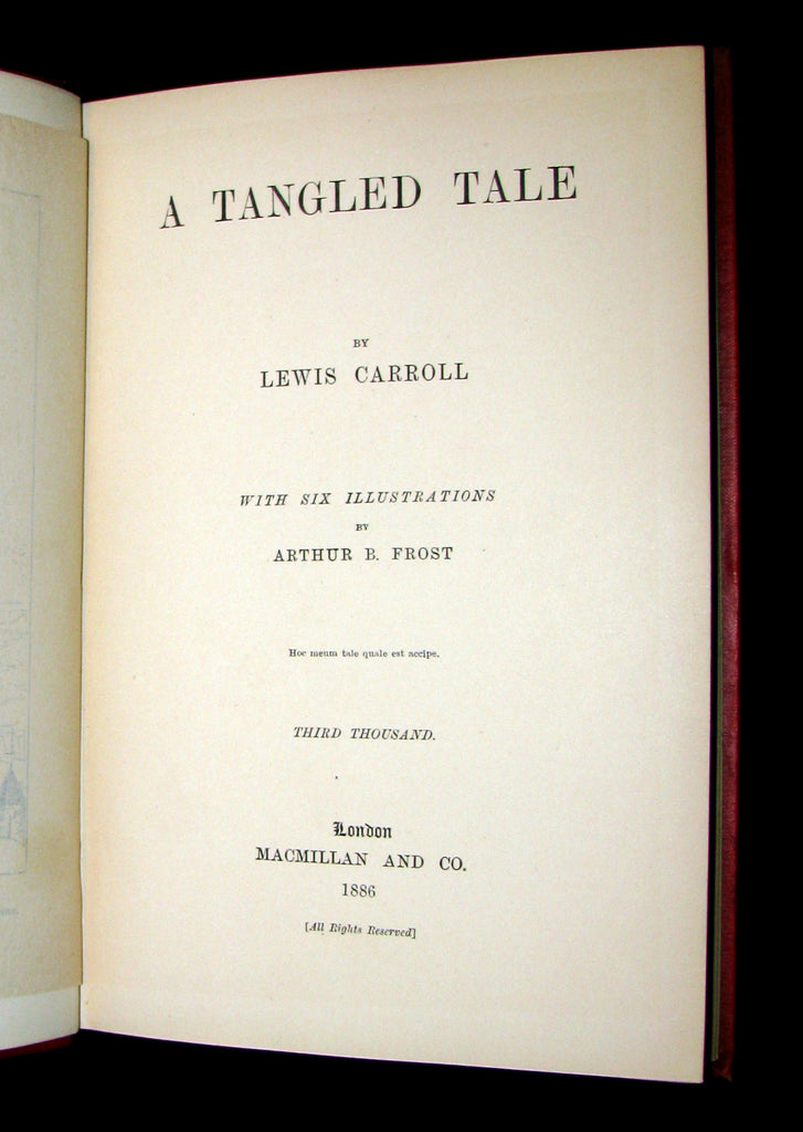 The book : Rare and attractive edition of A Tangled Tale by Alice's Adventures in Wonderland's author, Lewis Carroll, beautifully illustrated by Arthur Burdett Frost.