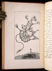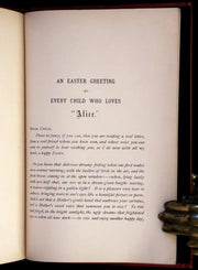 The book: This attractive First Edition is an enchanting facsimile of Lewis Carroll’s original manuscript, Alice's Adventures Under Ground, which he created in 1864 as a personal gift for Alice Liddell. It represents the genesis of Carroll’s later famous work, Alice's Adventures in Wonderland. This 1886 First edition captures the original charm and intimacy of the manuscript with Carroll’s handwritten text and sketches, offering readers insight into the early development of one of literature's most beloved tales. Lewis Carroll hand-wrote, illustrated, and bound this copy himself and later gave it as a gift to Alice Liddell and her two sisters, Lorina and Edith. A rare find in any condition! With "An Easter Greeting." in type at the end.