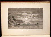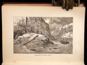 Binding: Very good original publisher's cloth binding with embossed designs and gilt decorations on the front cover and spine. The front cover features an intricate pictorial design of a canoe scene and a standing explorer (hinges fine, overall slightly worn and scuffed - as shown) under a protective removable mylar cover.