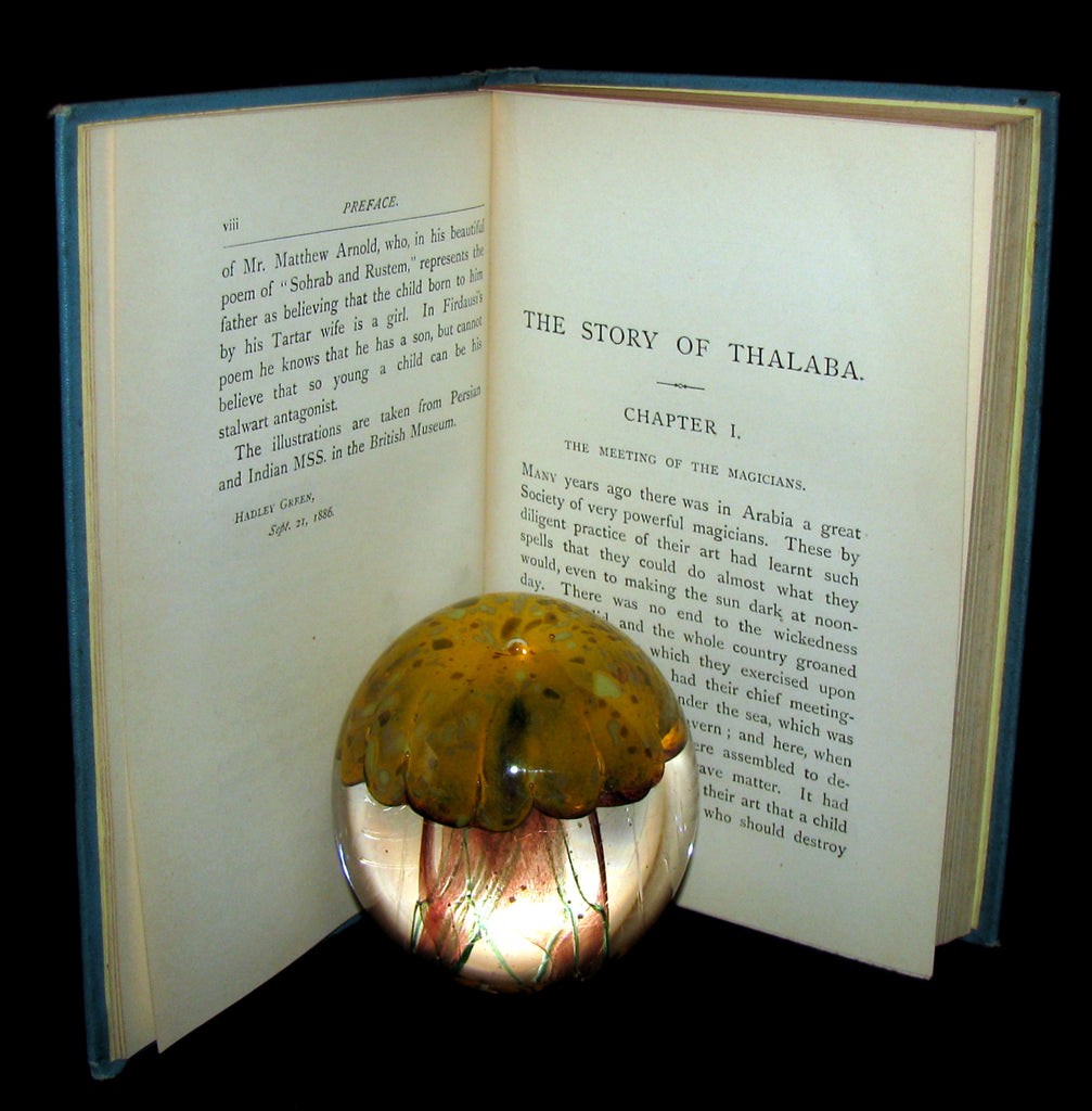The book : Scarce edition of this beautiful book containing stories of Thalaba and Kehama, after the epic poems of Robert Southey, and stories of Rustem, condensed from Firdausi's "Shah-Nameh", or "Book of the Kings". Most of the legends in this book pertain to the doing of magicians and sorcerers who read the stars, cast spells and bestow magic power on people.