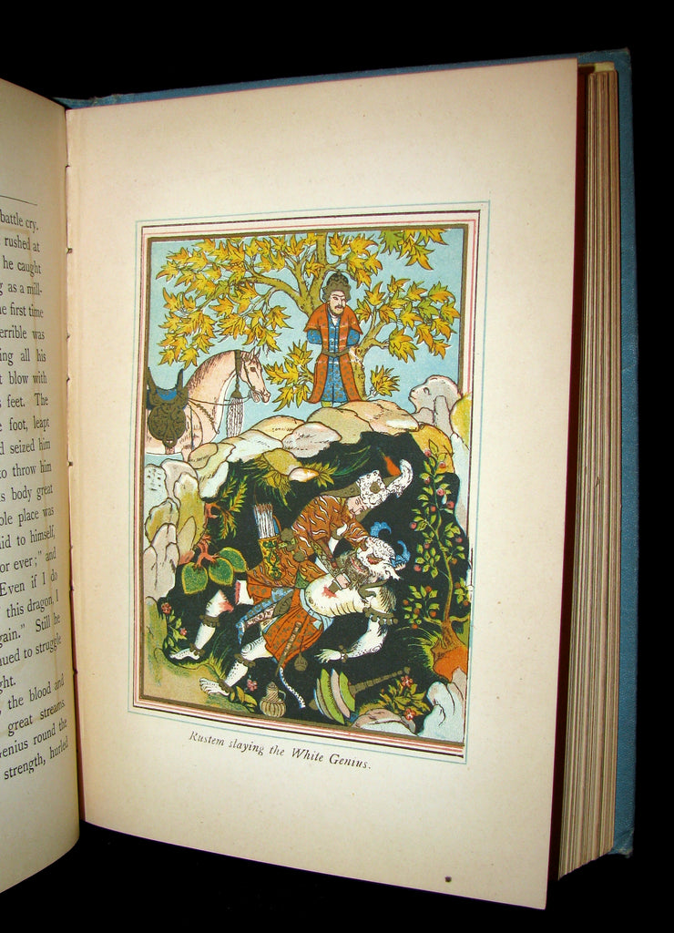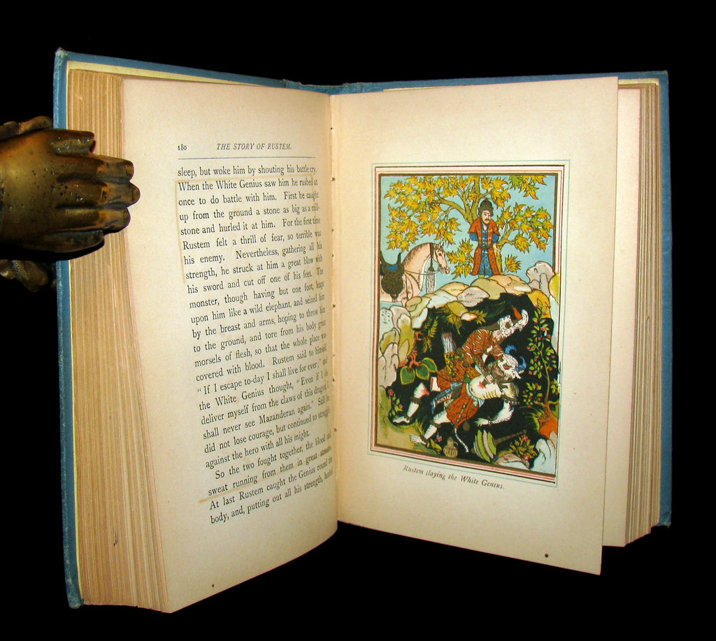 The book : Scarce edition of this beautiful book containing stories of Thalaba and Kehama, after the epic poems of Robert Southey, and stories of Rustem, condensed from Firdausi's "Shah-Nameh", or "Book of the Kings". Most of the legends in this book pertain to the doing of magicians and sorcerers who read the stars, cast spells and bestow magic power on people.