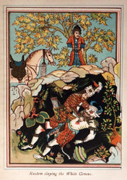 The book: Scarce edition of this beautiful book containing stories of Thalaba and Kehama, after the epic poems of Robert Southey, and stories of Rustem, condensed from Firdausi's "Shah-Nameh", or "Book of the Kings". Most of the legends in this book pertain to the doing of magicians and sorcerers who read the stars, cast spells and bestow magic power on people.