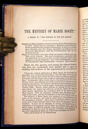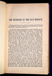 The book: A scarce edition of "The Murders in the Rue Morgue and Other Tales" by the master of macabre, Edgar Allan Poe. This collection encompasses some of his most renowned tales, including "The Black Cat", "The Pit & the Pendulum", "The Fall of the House of Usher", and "The Gold Bug", (Bound with) Narrative of A. Gordon Pym, making it a cherished item for any Poe enthusiast.