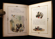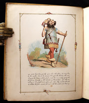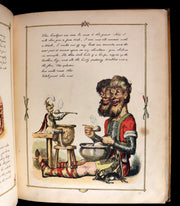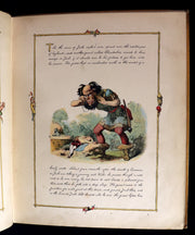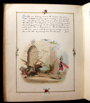 The book: Attractive and rare first edition of this wonderful facsimile reproduction of an original manuscript with calligraphic text and colored illustrations and wood-engraved decorative borders to every page. The original manuscript was created by Richard Doyle in 1842, at the age of 18. After his death in 1883, it was sold at Christie, Manson & Wood, "when, being amongst the most beautiful and highly-finished of his productions, it naturally realized a long price, and the purchaser lent it to the Publishers for reproduction". Eyre and Spottiswoode did a fine job and it is a work of great delight!