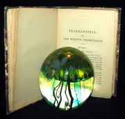 The book : Very Rare edition of Frankenstein; or, The Modern Prometheus -- a novel written by English author Mary Shelley (1797–1851) that tells the story of Victor Frankenstein, a young scientist who creates a grotesque but sapient creature in an unorthodox scientific experiment. Shelley started writing the story when she was 18, and the first edition of the novel was published anonymously in London on 1 January 1818, when she was 20. Her name first appeared on the second edition, published in France in 1823. A rare find in the original "green" binding!