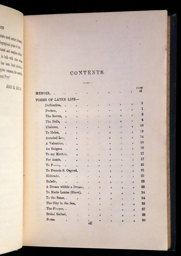 The book: Attractive and scarce binding variant for this Victorian edition of the Complete Poems by Edgar Allan Poe.