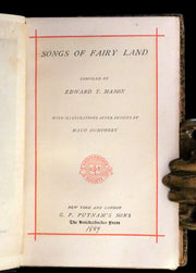 The book: A scarce first edition of "Songs of Fairy Land," compiled by Edward T. Mason and illustrated by Maud Humphrey, published around 1889 by G.P. Putnam's Sons. This collection of fairy-themed songs and poems is a charming and whimsical exploration of fairy lore and fantasy. The book's gilt decorated pictorial cloth binding and Maud Humphrey's illustrations make it an attractive and collectible piece.