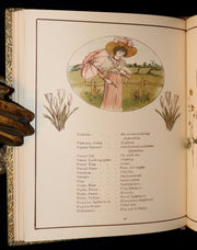 The book: Scarce in such wonderful binding! This wonderful book is all about flowers and their meanings (floriography). The first part contains a list of alphabetically ordered flowers and their meaning. In the second part, the list is reversed. This way you can search for emotions and see which flower is most appropriate for it. Follow pages filled with small poems about flowers by famous writers. The last page shows the list of Greenaway's illustrations.