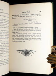 The book: A beautifully preserved Victorian edition of Jules Verne’s Among the Cannibals, part of his famous adventure series. This collected volume includes The Mysterious Document, On the Track, and Among the Cannibals, each chronicling the daring voyages of Lord Glenarvan and his companions aboard the yacht Duncan. Illustrated with richly atmospheric frontispieces by Henry Austin, this edition captures the imagination and visual drama characteristic of late 19th-century Verne editions. The vibrant cover design is an exceptional example of Victorian publisher’s cloth binding at its most visually engaging.