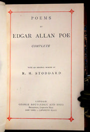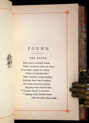 The book: This edition of Poems by Edgar Allan Poe, Complete is a beautifully bound and richly illustrated volume that stands out for its luxurious red leather binding and high-quality production. The inclusion of a memoir by R. H. Stoddard adds further value, providing readers with context and insight into Poe's life and works. This edition is a superb example of 19th-century craftsmanship and would make a valuable addition to any collection of Poe's works or fine bindings.