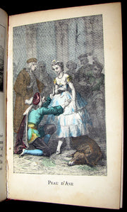 The book : Scarce color illustrated french edition of Perrault's fairy tales. Including : Le Petit Chaperon rouge. Les Souhaits ridicules. Peau d'âne. Le Petit Poucet. Le Chat botté. Cendrillon. La Barbe bleue. Riquet à la houppe. La Belle au bois dormant. L'adroite princesse and Les Fées.