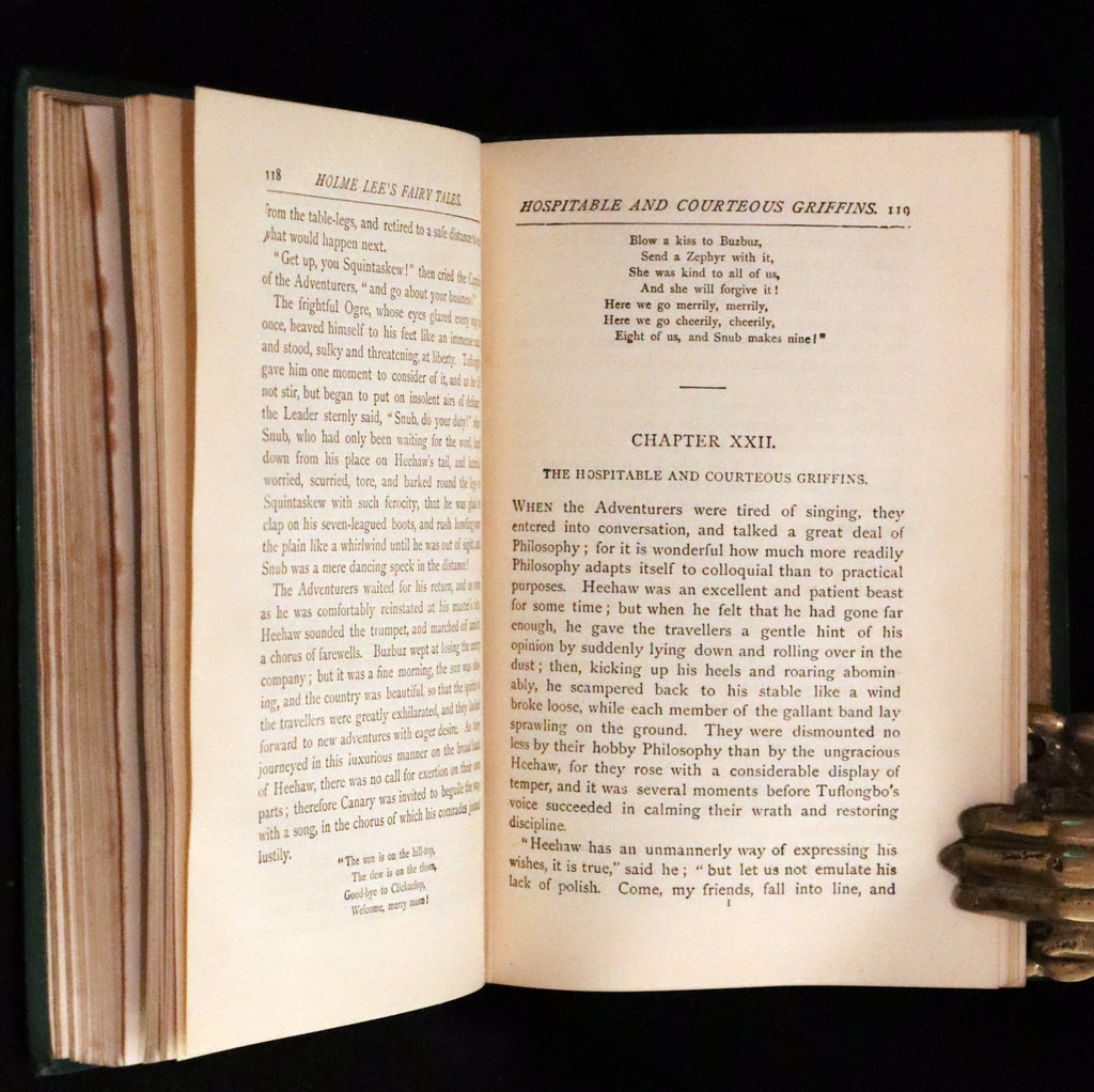 The book: Rare and very attractive edition of Holme Lee's Fairy Tales. Dive into the enchanted world of Holme Lee's Victorian fairy tales with this 1890 revised edition, showcasing a treasury of stories woven with the magic and whimsy of the era. The beautiful original cloth binding is illustrated with period artistry, inviting readers into the tales before even turning a page.
