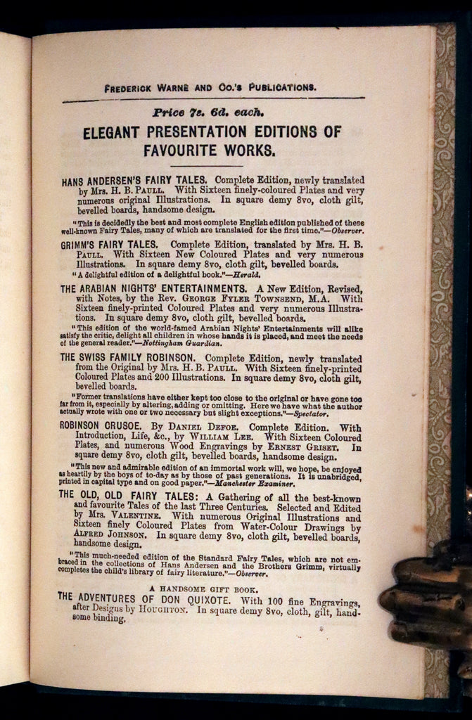 Publisher: London and New York, Frederick Warne and Co., no date (1890). New Revised Edition (stated).