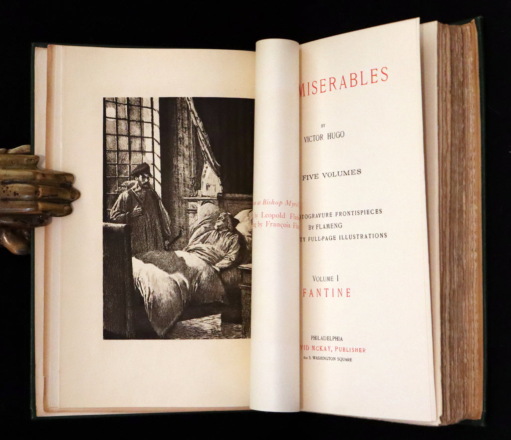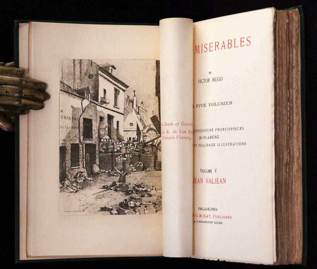 1890 Rare Victorian Book set - LES MISERABLES by Victor Hugo Illustrated by Francois Flameng.