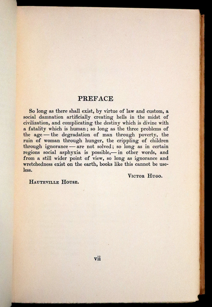 The author: Victor Marie Hugo (26 February 1802 – 22 May 1885) was a French poet, novelist, and dramatist of the Romantic movement. Hugo is considered to be one of the greatest and best-known French writers. Outside of France, his most famous works are the novels Les Misérables, 1862, and The Hunchback of Notre-Dame (French: Notre-Dame de Paris), 1831. In France, Hugo is known primarily for his poetry collections, such as Les Contemplations (The Contemplations) and La Légende des siècles (The Legend of the Ages).