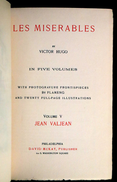 Title: Les Miserables by Victor Hugo with Photogravures Frontispieces by Flameng and Twenty Full-Page illustrations. In Five Volumes.