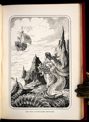 The book: "Fairy Tales and Household Stories Collected by the Brothers Grimm," illustrated by H. L. Shindler, is a scarce first edition from 1890, offering a rich collection of the Grimms' beloved fairy tales. This edition is particularly notable for its inclusion of sixteen full-page plates by H. L. Shindler, whose artwork brings a new visual dimension to the classic stories. The tales themselves, collected by Jacob and Wilhelm Grimm, have captivated readers for generations with their blend of magic, morality, and myth.