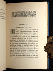 The book: Scarce Edition. The Princess and Curdie is the darker, more allegorical sequel to The Princess and the Goblin, deepening MacDonald’s exploration of moral growth, obedience, and spiritual insight. Here, Curdie leaves the mines and is drawn into the political and ethical struggles of the kingdom, guided by the Princess and the mysterious, Christ-like presence of her great-great-grandmother. This “New Edition” from Blackie & Son presents the tale in an appealing gift-book format, with richly designed blue cloth and atmospheric tinted illustrations that enhance its dreamlike, sometimes unsettling tone.