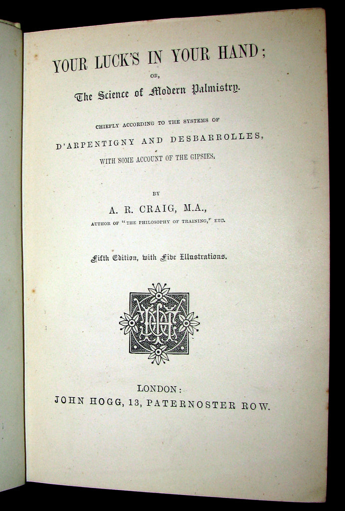 1890 Scarce Book - Your Luck's in your Hand, PALMISTRY with some account of the Gipsies