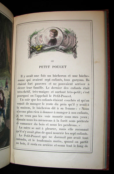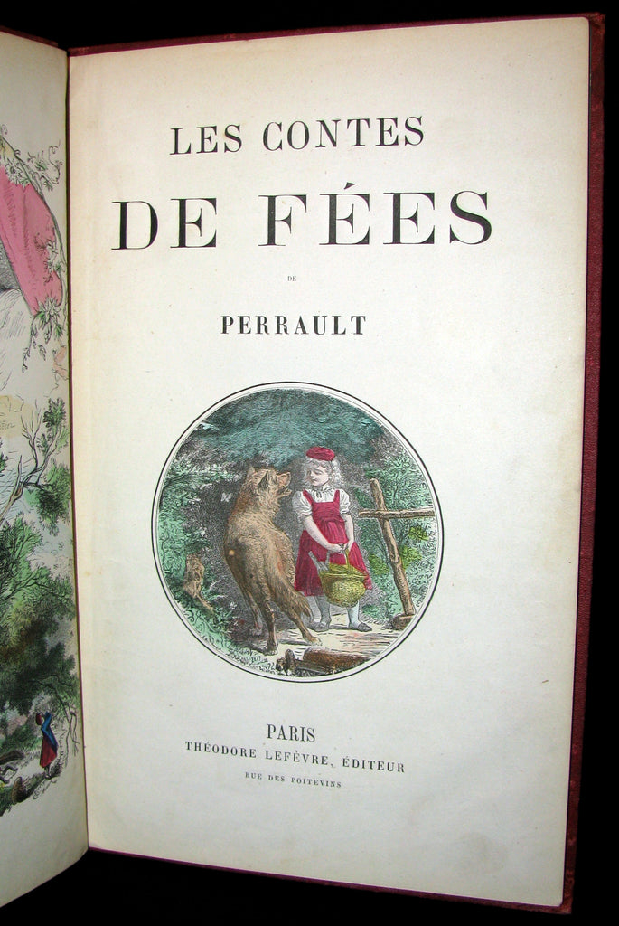 The book : Scarce color illustrated french edition of Perrault's fairy tales published by Lefevre (uncommon format for this color edition). Including : Le Petit Chaperon rouge. Les Souhaits ridicules. Peau d'âne. Le Petit Poucet. Le Chat botté. Cendrillon. La Barbe bleue. Riquet à la houppe. La Belle au bois dormant.and Les Fées.