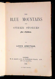 The book: A Scarce First Edition of The Blue Mountains and Other Stories for Children by Rose Mabel Lewis, writing under the pseudonym Lewis Armytage, published in 1890 by W. H. Allen & Co., London. This collection of children's stories includes The Blue Mountains, The Story of a Bookworm, The Dream that Became Real, The Green Scarf, Prince Apcoel's Joke, Amser's Nursling, The Wishing Stone & Fritz's Christmas.