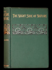 The book: Scarce binding variant for this Routledge edition of this famous popular examination of supernatural phenomena of the 19th century. Catherine Crowe turned increasingly to supernatural subjects, inspired by German writers. Her collection The Night-side of Nature (1848) became her most popular work . It was translated into German and French, and is said to have influenced the views of Charles Baudelaire. Her own involvement in such matters came to a bizarre culmination in February 1854, when she was discovered naked in Edinburgh one night, convinced that spirits had rendered her invisible. She was treated for mental illness and recovered. This edition comprises the original (two volumes bound as one), with some revisions and additions and a new preface. An intriguing collection of sketches and anecdotes relating to ghosts and the mystery of life as understood by this noted Victorian novelist