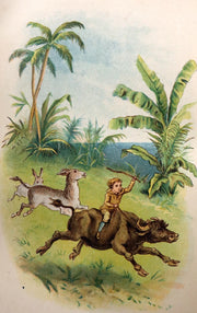 The book: Beautiful Victorian color illustrated edition of The Swiss Family Robinson (German: Der Schweizerische Robinson) is a novel by Johann David Wyss, first published in 1812, about a Swiss family of immigrants whose ship en route to Port Jackson, Australia, goes off course and is shipwrecked in the East Indies. The ship's crew is lost, but the family and several domestic animals survive. They make their way to shore, where they build a settlement, undergoing several adventures before being rescued; some refuse rescue and remain on the island.