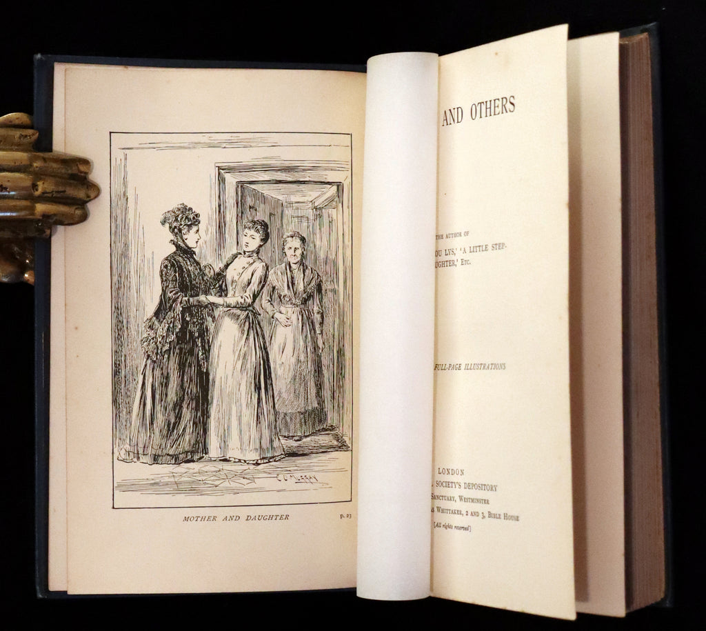 The book: A rare Victorian first edition of "Kinsfolk and Others," this gem from Margaret Roberts offers an intricate portrayal of the society and dynamics of the era. As the author of "Atelier du Lys," Roberts displays her unique narrative prowess, intertwining rich character developments with the tapestry of the time. This edition, published by the National Society's Depository, is beautifully preserved in its original illustrated full-cloth binding, which stands as a testament to the artistry and craftsmanship of the period. A Sunday School prize bookplate graces its first endpaper, hinting at the novel's cherished history.