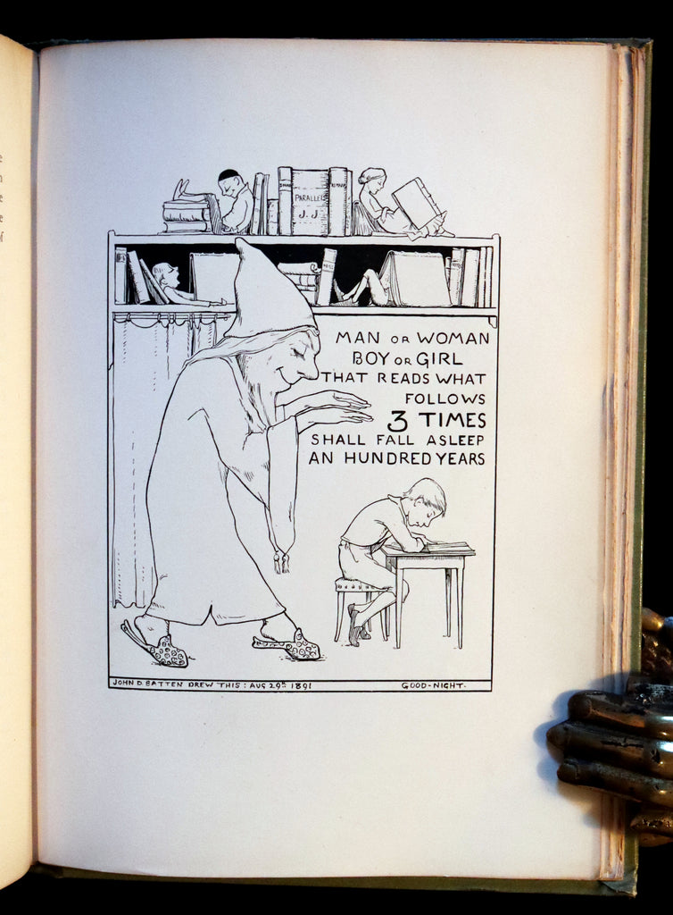 The illustrator: John Dickson Batten (8 October 1860 – 5 August 1932), born in Plymouth, Devon, was an English painter of figures in oils, tempera and fresco and a book illustrator and printmaker. He was an active member of the Society of Painters in Tempera, with his wife Mary Batten, a gilder.