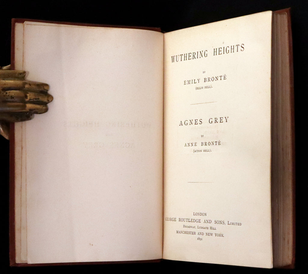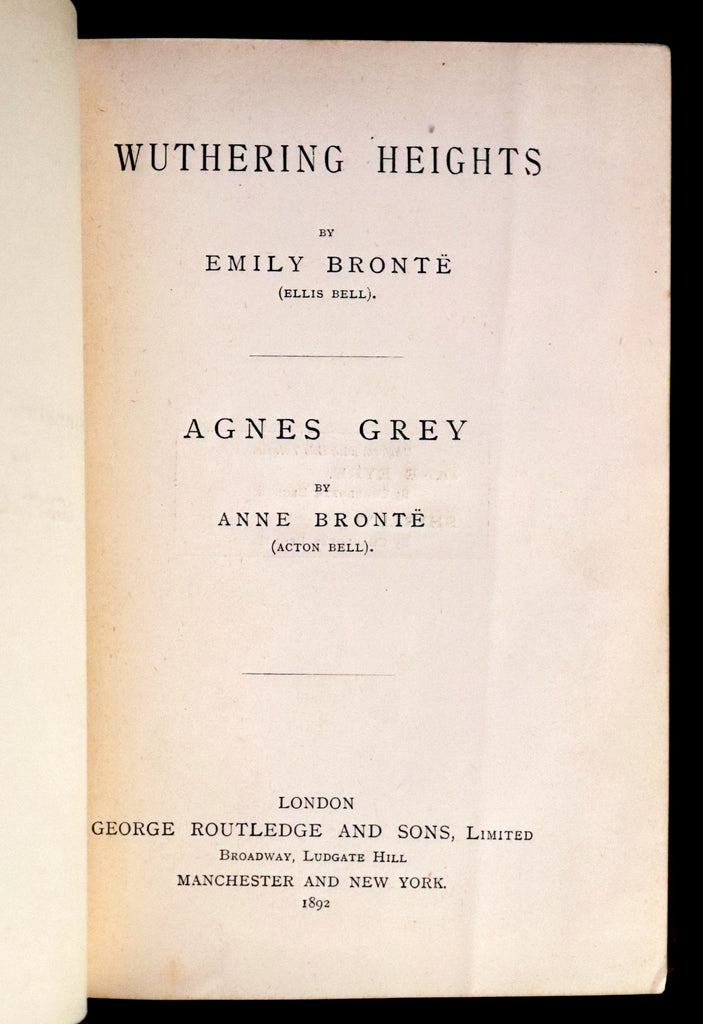 1892 Scarce Edition - WUTHERING HEIGHTS by Emily Brontë (Ellis Bell), And Agnes Grey by Anne Brontë (Acton Bell).