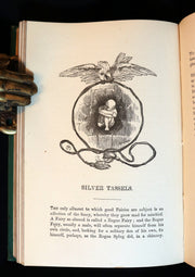 The book: Scarce and very attractive edition of those two volumes combine in one. First published in 1859 and 1860, under the several titles of "Fables and Fairy Tales" and "Oberon's Horn," have been united in three subsequent editions, and are reprinted in this volume in their complete form.