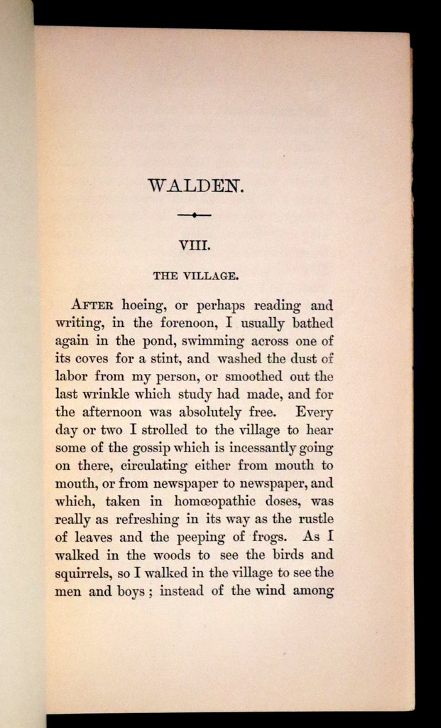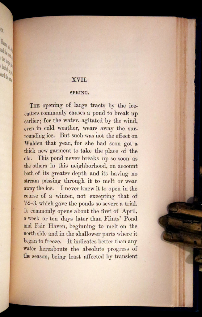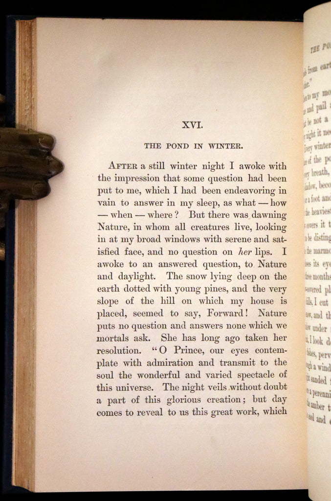 The book: Rare Riverside edition in two volumes of Walden in a very good original navy-blue publisher's cloth -- Walden is a book by noted transcendentalist Henry David Thoreau. The text is a reflection upon simple living in natural surroundings. The work is a part personal declaration of independence, social experiment, a voyage of spiritual discovery, satire, and (to some degree) manual for self-reliance. This particular copy was the property of Milton Horn (September 1, 1906 – March 29, 1995) - a Russian American sculptor and artist known for work that, according to a 1957 citation of honor from the American Institute of Architects, demonstrated "the truth that architecture and sculpture are not two separate arts but, in the hands of sympathetic collaborators, one and the same".