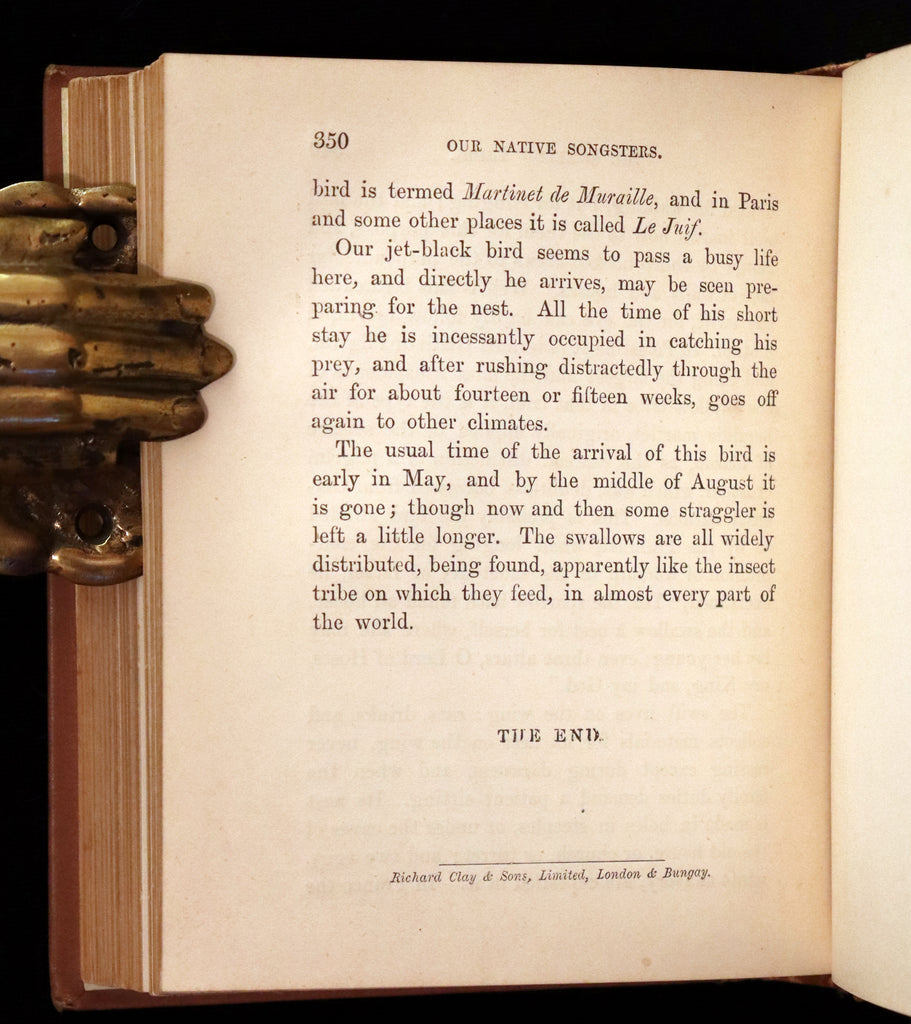 The book: A charming Victorian edition of Our Native Songsters, authored by the accomplished Anne Pratt. A work of natural history, it explores the fascinating world of songbirds. Housed in an original publisher's illustrated full-cloth binding, this volume will delight any bird enthusiast or collector of natural history books.