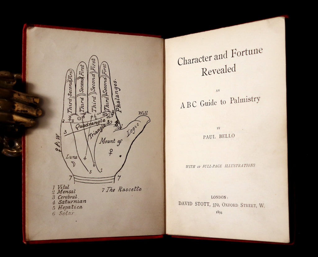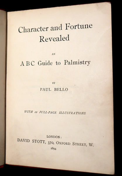 1894 Scarce Book - Character and Fortune Revealed. An ABC Guide to PALMISTRY by Paul Bello.