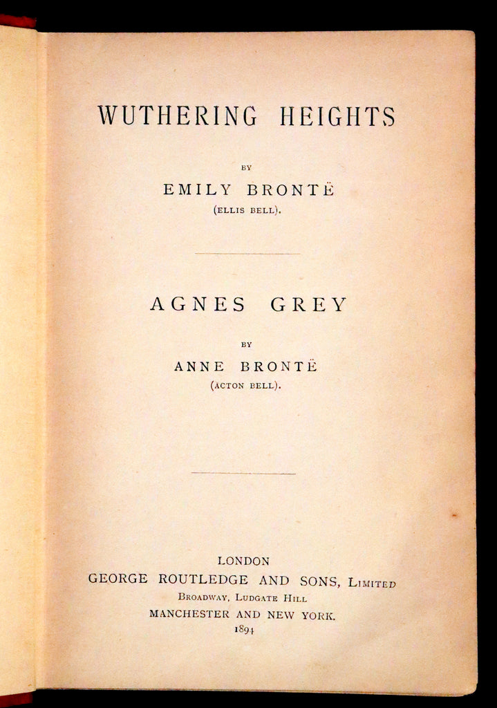 1894 Scarce Edition - WUTHERING HEIGHTS by Emily Brontë (Ellis Bell), And Agnes Grey by Anne Brontë (Acton Bell).