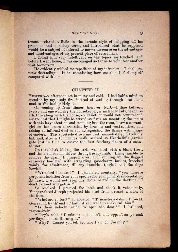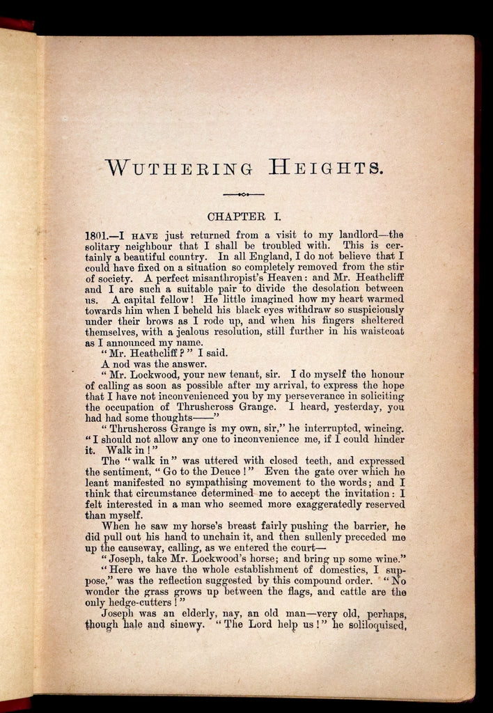 The book: Attractive and scarce 1894 edition of Wuthering Heights -- a novel by Emily Brontë published in 1847 under her pseudonym "Ellis Bell". It is her only finished novel. Wuthering Heights and Anne Brontë's Agnes Grey were accepted by publisher Thomas Newby before the success of her sister Charlotte's novel Jane Eyre. After Emily's death, Charlotte edited a posthumous second edition in 1850. Although Wuthering Heights is now a classic of English literature, contemporary reviews were deeply polarised; it was controversial because of its unusually stark depiction of mental and physical cruelty, and it challenged Victorian ideas about religion, morality, class, and a woman's place in society.