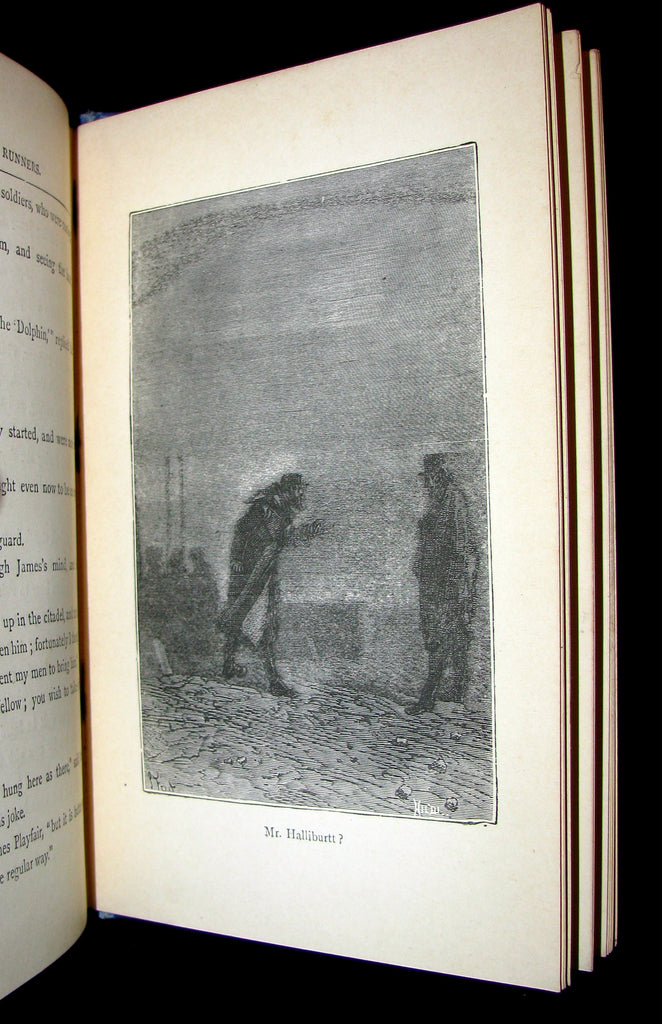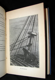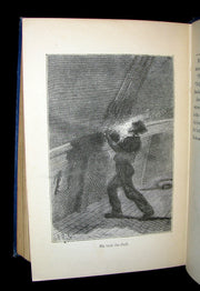 The book: Scarce and attractive edition of this volume which consists of two separate tales. The first is a fictionalized narrative of Verne's 1867 passage from Liverpool to New York aboard "The Great Eastern," the largest iron ship ever built and one of the wonders of its age. Her length was 692 feet, her beam was 120, her paddlewheels and propeller were larger than anything the ocean had ever seen, and she was designed to carry more passengers than the Queen Mary. Because of her size, "The Great Eastern" was the only ship capable of laying the great Atlantic Cable. The second tale is fictional, more in Verne's usual style: a Glasgow shipowner devises an adventurous plan to run the Union blockade of southern ports during the American Civil War, in order to bring a load of cotton back to his city's 25,000 idle looms.