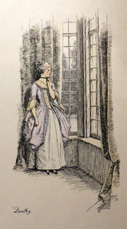 The illustrator: Hugh Thomson RI (1 June 1860 – 7 May 1920) was an Irish Illustrator born at Coleraine near Derry. He is best known for his pen-and-ink illustrations of works by authors such as Jane Austen, Charles Dickens, and J. M. Barrie. Thomson inaugurated the Cranford School of illustration with the publication of the 1891 Macmillan reissue of Mrs. Gaskell's Cranford.