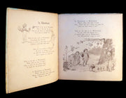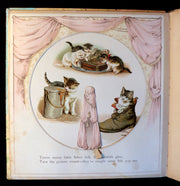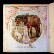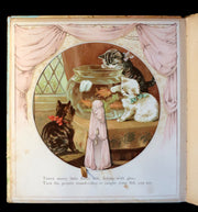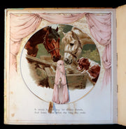 The book: Attractive and Uncommon movable book, consisting of nine poems and eight revolving illustrations featuring kittens, puppies, farm animals, and children at play. Poems include: In Wonderland, Hide-and-Seek, Three Little Kittens, Snowflakes and Roseleaves, Trit! Trot!, All Aboard, Summer and Winter, Spot, and Afternoon Tea. Considered one of the greatest makers of movable books, Ernest Nister was based in Nuremberg, a center for toy making in the late nineteenth century, and had offices in London as well. Between 1891 and 1900, the firm produced many children's books and ephemeral items of superior quality in both illustration and printing. "Nister's major contribution to the field was a large number of 'dissolving' picture books—developing further the rather rudimentary items produced by Dean—in which an illustration changed into a completely different scene at the pull of a tab… Beautiful!