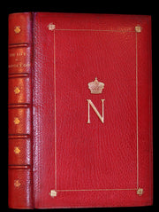 Binding: Attractive and good to very good beautiful gilt decorated full red morocco leather binding, finely bound by Ramage bindery with central "N" below a crown (Napoleon symbols), one concentric gilt-ruled rectangle with bee vignettes at each corner in gilt (front hinge cracked on 1" but still tight, overall slightly worn and scuffed - as shown) under a protective removable mylar cover. All edges gilt.