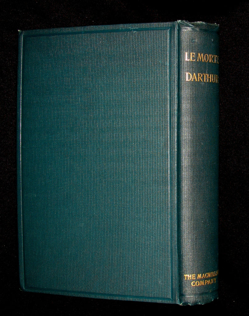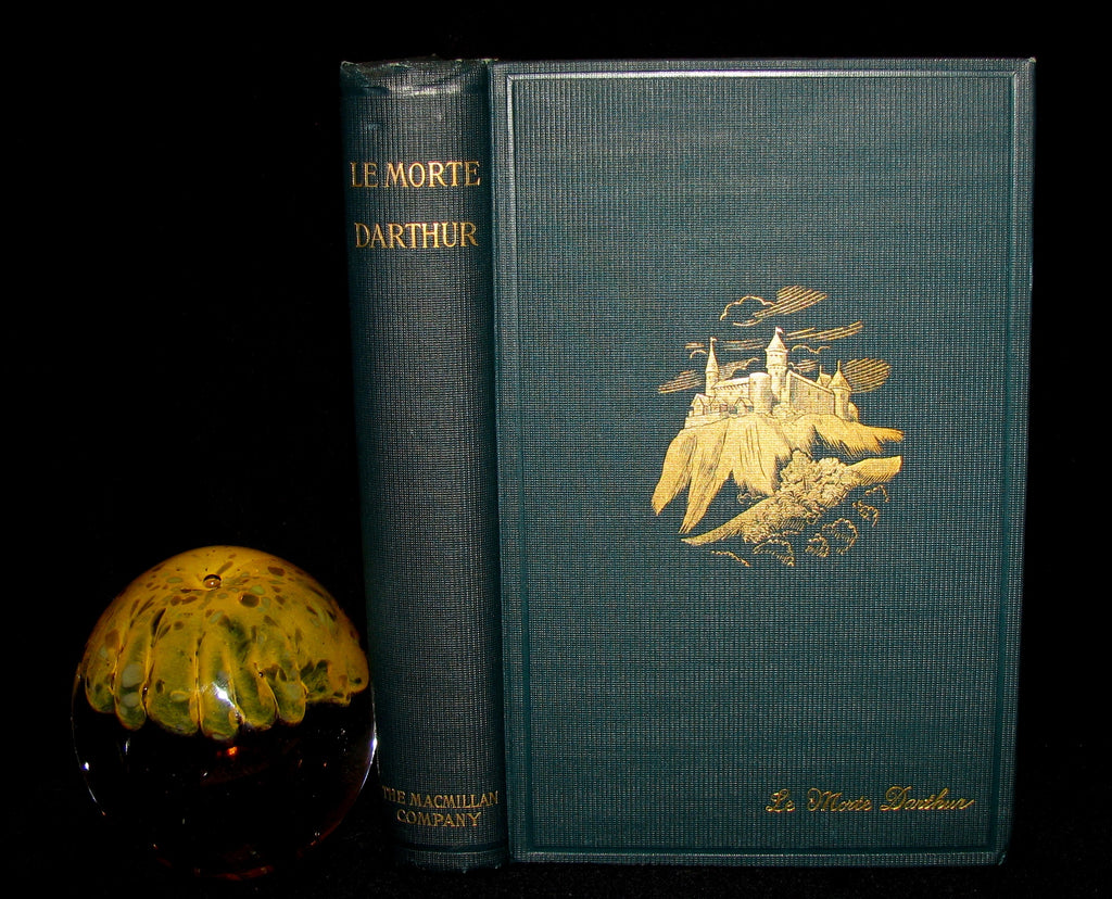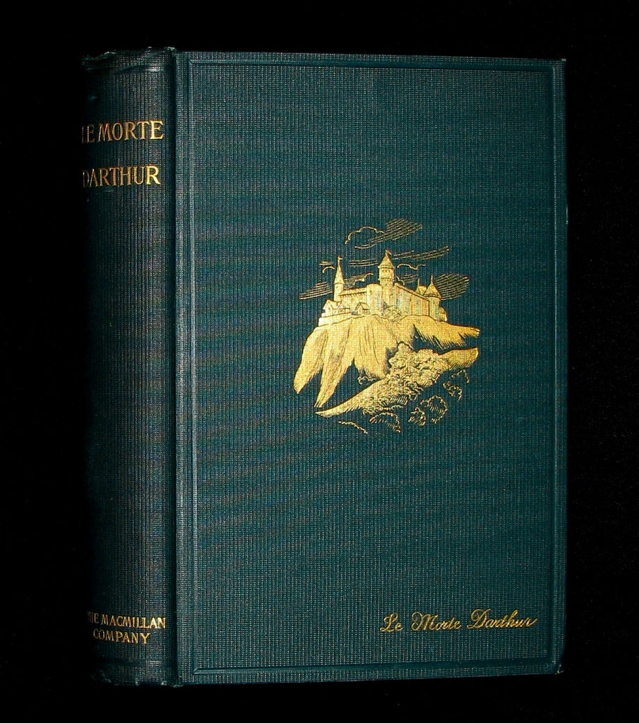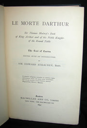 The book: Attractive and scarce binding of Le Morte d'Arthur (originally spelled Le Morte Darthur, Middle French for "The Death of Arthur") -a reworking by Sir Thomas Malory of existing tales about the legendary King Arthur, Guinevere, Lancelot, Merlin, and the Knights of the Round Table. Malory interpreted existing French and English stories about these figures and adds original material (e.g., the Gareth story). Malory's actual title for the work was The Whole Book of King Arthur and His Noble Knights of the Round Table (The Hoole Book of Kyng Arthur and of His Noble Knyghtes of The Rounde Table), but after Malory's death the publisher changed the title to that commonly known today, which originally only referred to the final volume of the work.