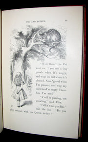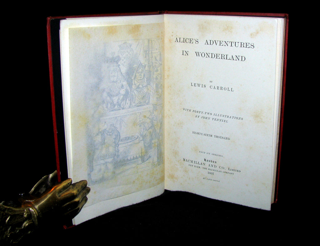 The book : Rare and attractive edition of Alice's Adventures in Wonderland (commonly shortened to Alice in Wonderland) -- an 1865 novel written by English author Charles Lutwidge Dodgson under the pseudonym Lewis Carroll. It tells of a girl named Alice falling through a rabbit hole into a fantasy world populated by peculiar, anthropomorphic creatures. The tale plays with logic, giving the story lasting popularity with adults as well as with children. It is considered to be one of the best examples of the literary nonsense genre. Its narrative course and structure, characters and imagery have been enormously influential in both popular culture and literature, especially in the fantasy genre.