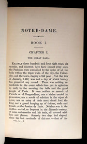 The books: Attractive and rare edition of The Hunchback of Notre-Dame (French: Notre-Dame de Paris, "Our Lady of Paris") - a French Romantic/Gothic novel by Victor Hugo, published in 1831. The novel's original French title, Notre-Dame de Paris, is a metaphor: it refers to Notre Dame Cathedral, on which the story is centered, and Esmeralda, the novel's main character who is "our lady of Paris" and the center of the human drama within the story. Frederic Shoberl's 1833 English translation was published as The Hunchback of Notre Dame (which became the generally used title in English), which refers to Quasimodo, Notre Dame's bellringer.