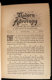 Publisher: London, "Modern Astrology" At the Editorial Office, Containing the editions for the year 1897, complete in one volume, from August 1897 to January 1898 (six issues). First Edition.