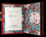 Binding: Attractive and very good binding, beautifully bound in full red prize presentation morocco leather, with the Blackburn School gilt crest on the front board. Gilt decorations on spine and board edges, five raised bands (hinges fine, overall slightly worn and scuffed - as shown) under a protective removable mylar cover. All edges marbled.