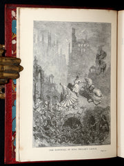 Illustrations: Illustrated throughout with a frontispiece and seven dramatic full-page black-and-white engravings by the celebrated French artist Gustave Doré, including depictions of Arthurian legends such as Merlin, the Green Chapel, and the final scenes of Arthur’s reign.